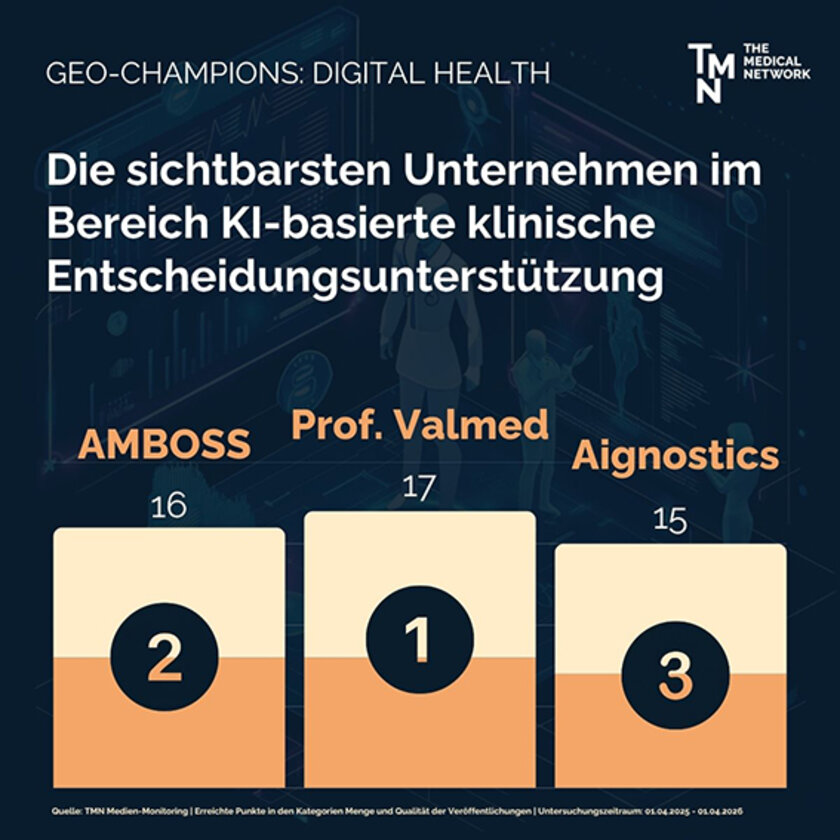 Im Bereich der KI-basierten klinischen Entscheidungsunterstützung zeigt sich, wie auch regulatorische Meilensteine, wissenschaftliche Fachkommunikation und Community Building die KI-Sichtbarkeit prägen.